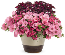 COLORBLAZE® Velveteen™ Coleus (Solenostemon) - There is drama written all over this gorgeous dark foliage beauty, its broad burgundy leaves with hot pink centers forming a densely branched, upright pillar perfect for thrilling combination containers and landscapes. Like all ColorBlaze® Coleus, it is bred to take the heat without losing its color and it blooms very late in the season, if at all, extending its garden performance into the fall. Try this alternative to impatiens for shade, as it is resistant to downy mildew. |